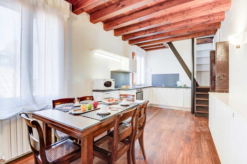 Elegante appartamento al secondo piano, a pochi passi dal suggestivo campo di San Giacomo dell’Orio, nel sestiere di Santa Croce.
