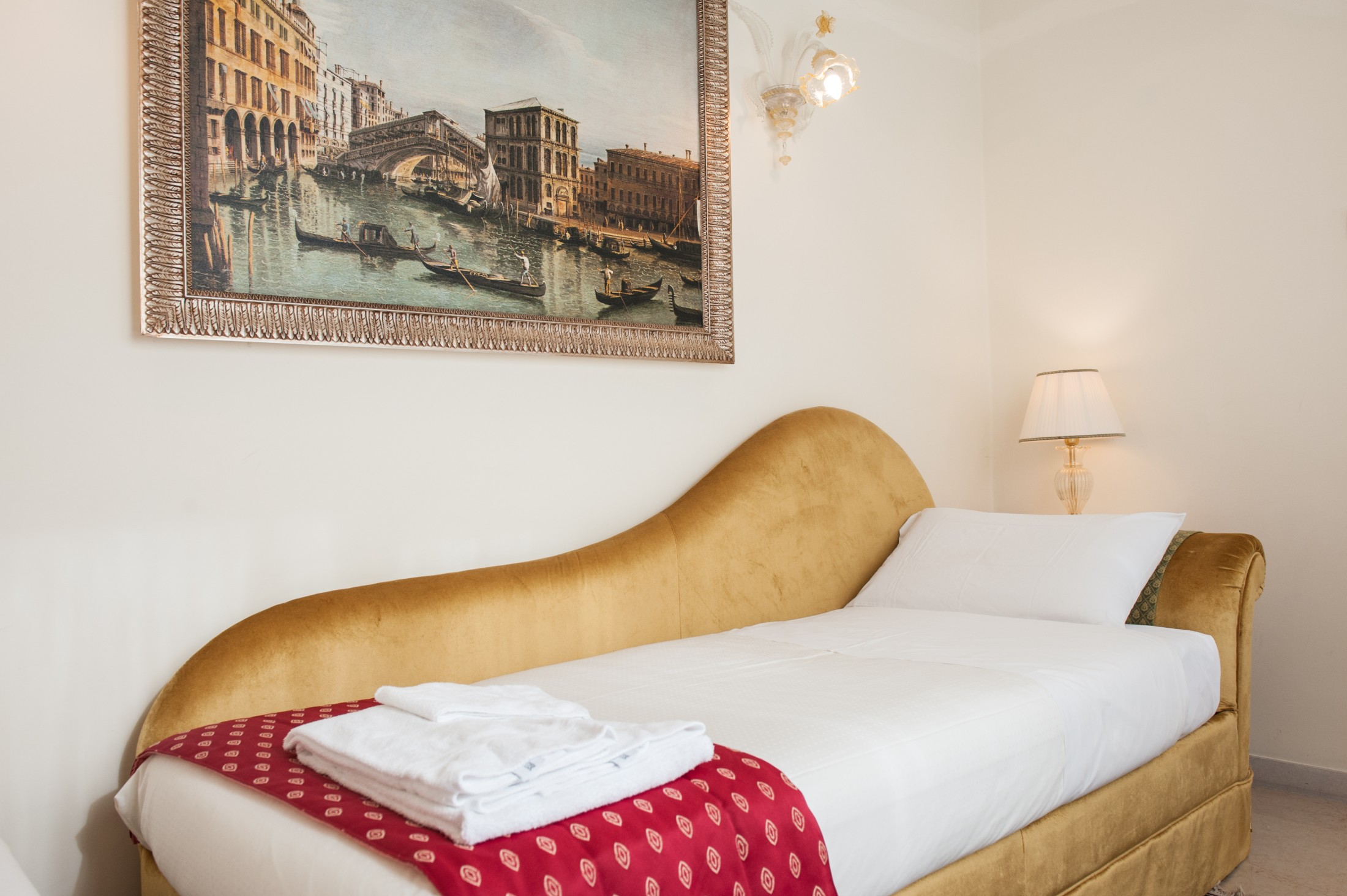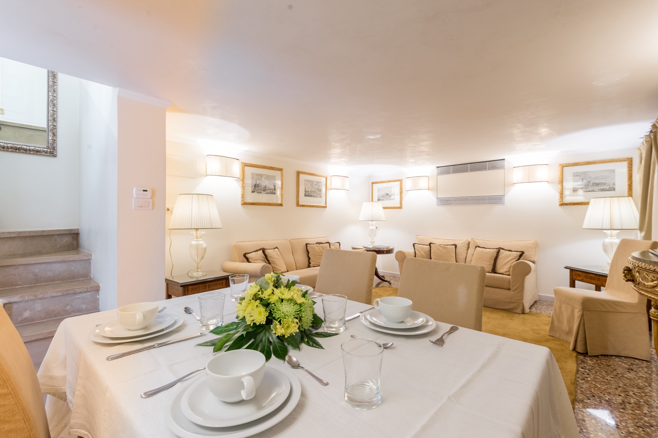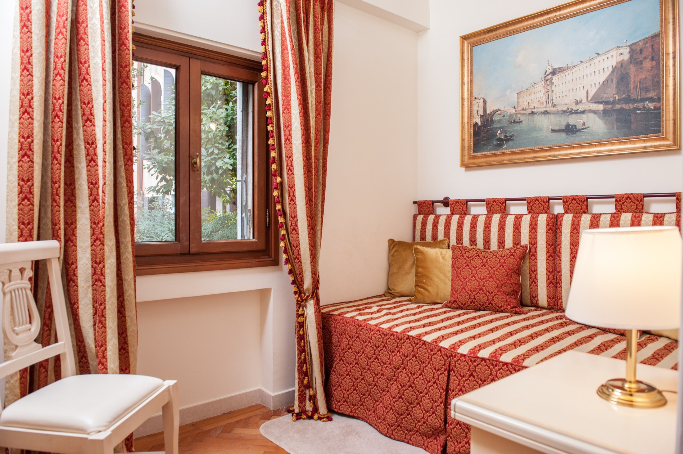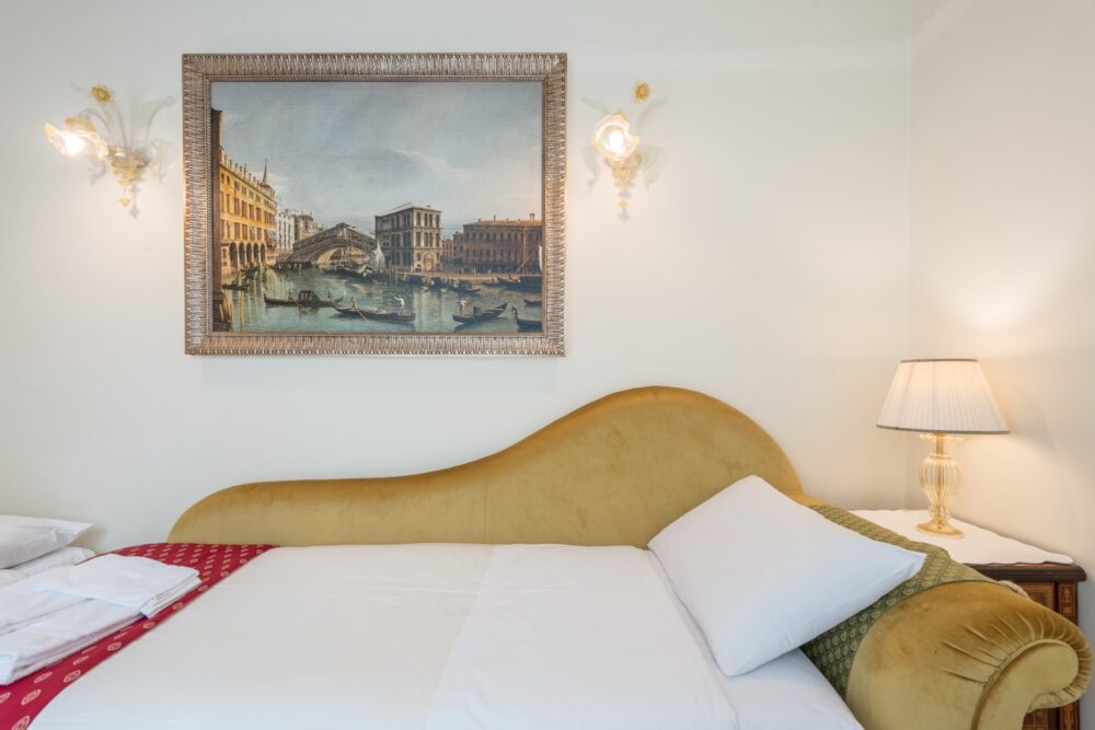 The Cupido apartment overlooks the private garden of Palazzo Ca’ dei Cuori and is arranged over two floors: